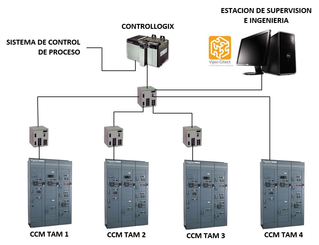 El proyecto corresponde a una nueva refinería para el cual Schneider Electric suministró CCM inteligente con para 105 motores con arranques directos, estrella-triangulo, arrancadores suaves y variadores de velocidad comunicados a un PLC ControlLogix a través de Modbus TCP. Este PLC sirve de interface para un SCADA eléctrico Vijeo Citect y para el sistema de control de proceso.